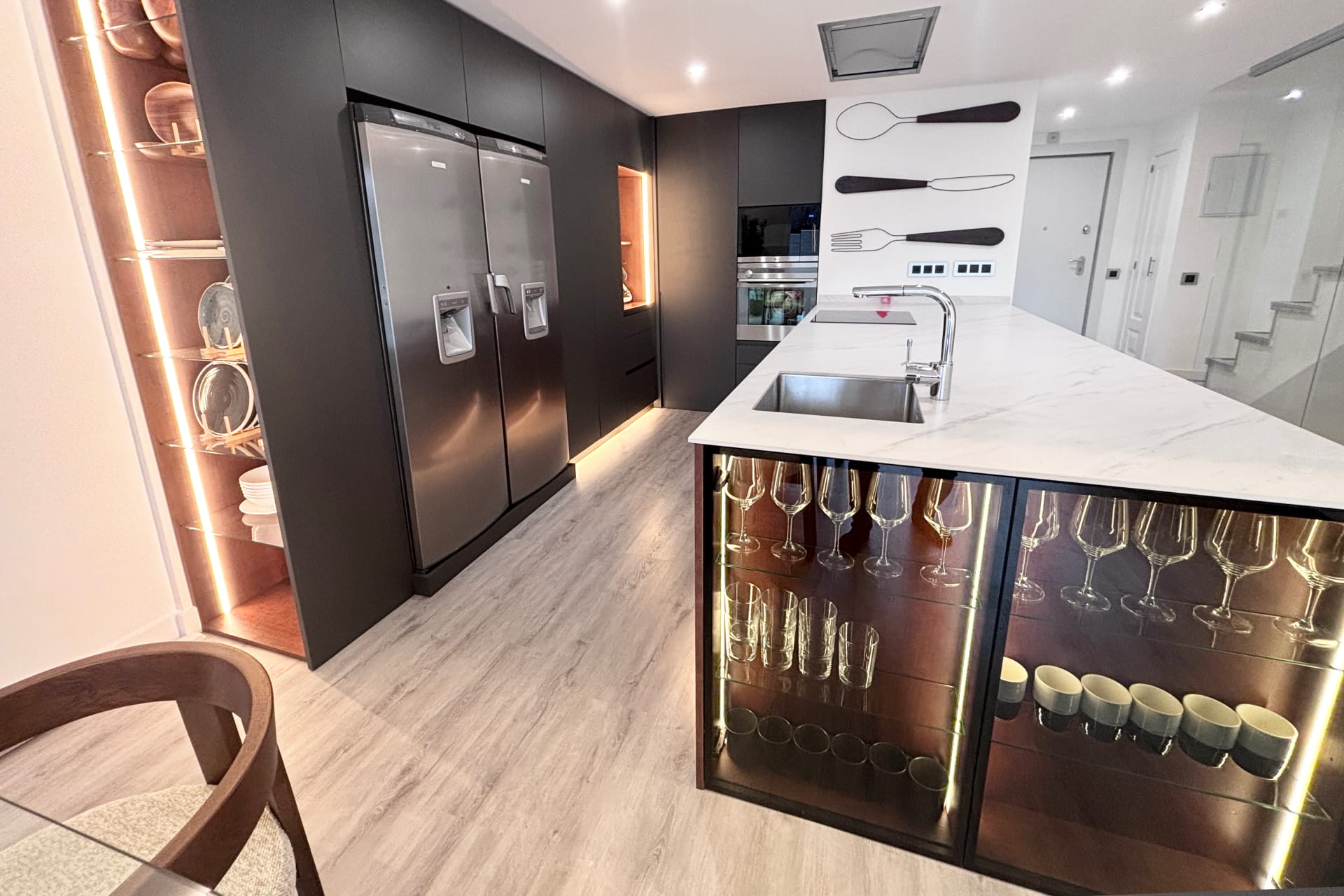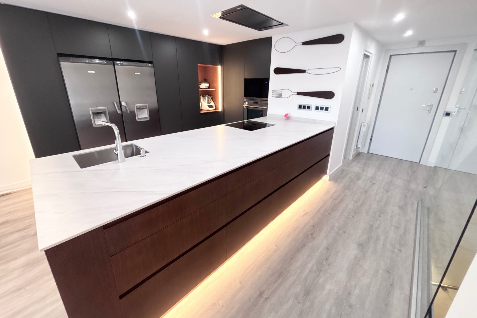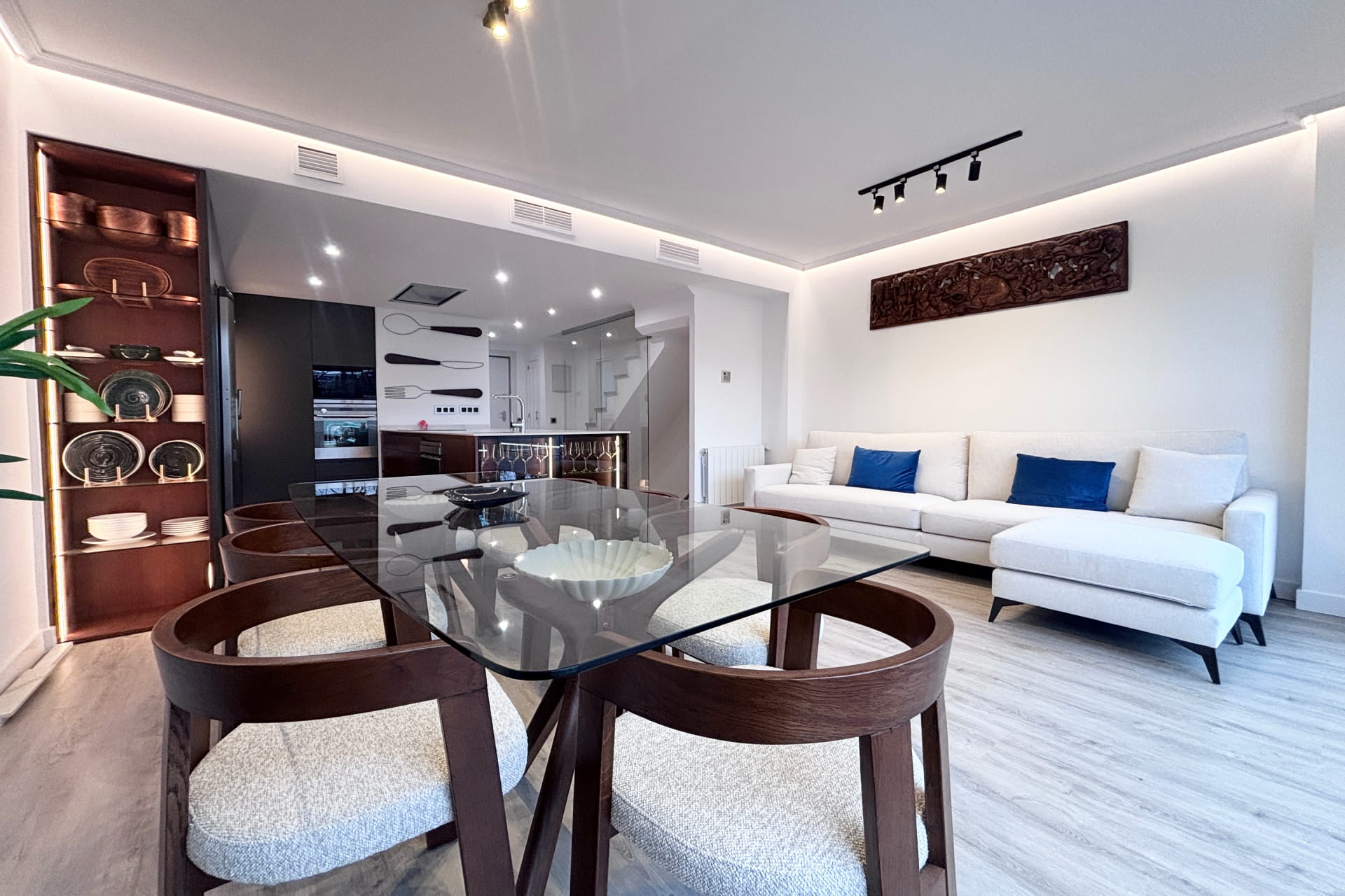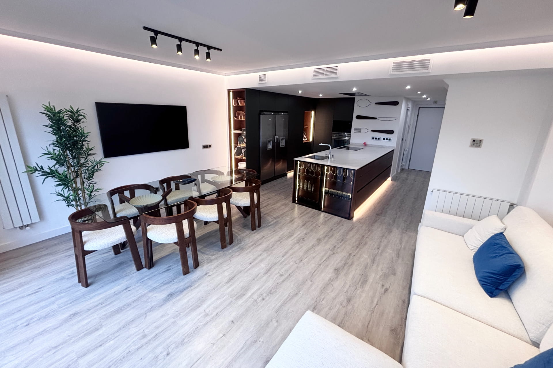 Reforma integral para particular llevada a cabo en el norte de Madrid. Cambio al completo de toda la instalación de fontanería, climatización y electricidad. Eliminación del gotelé de toda la vivienda, cambio de distribución y carpintería. Montaje de mobiliario, baños, sanitarios y decoración exterior entre otros.