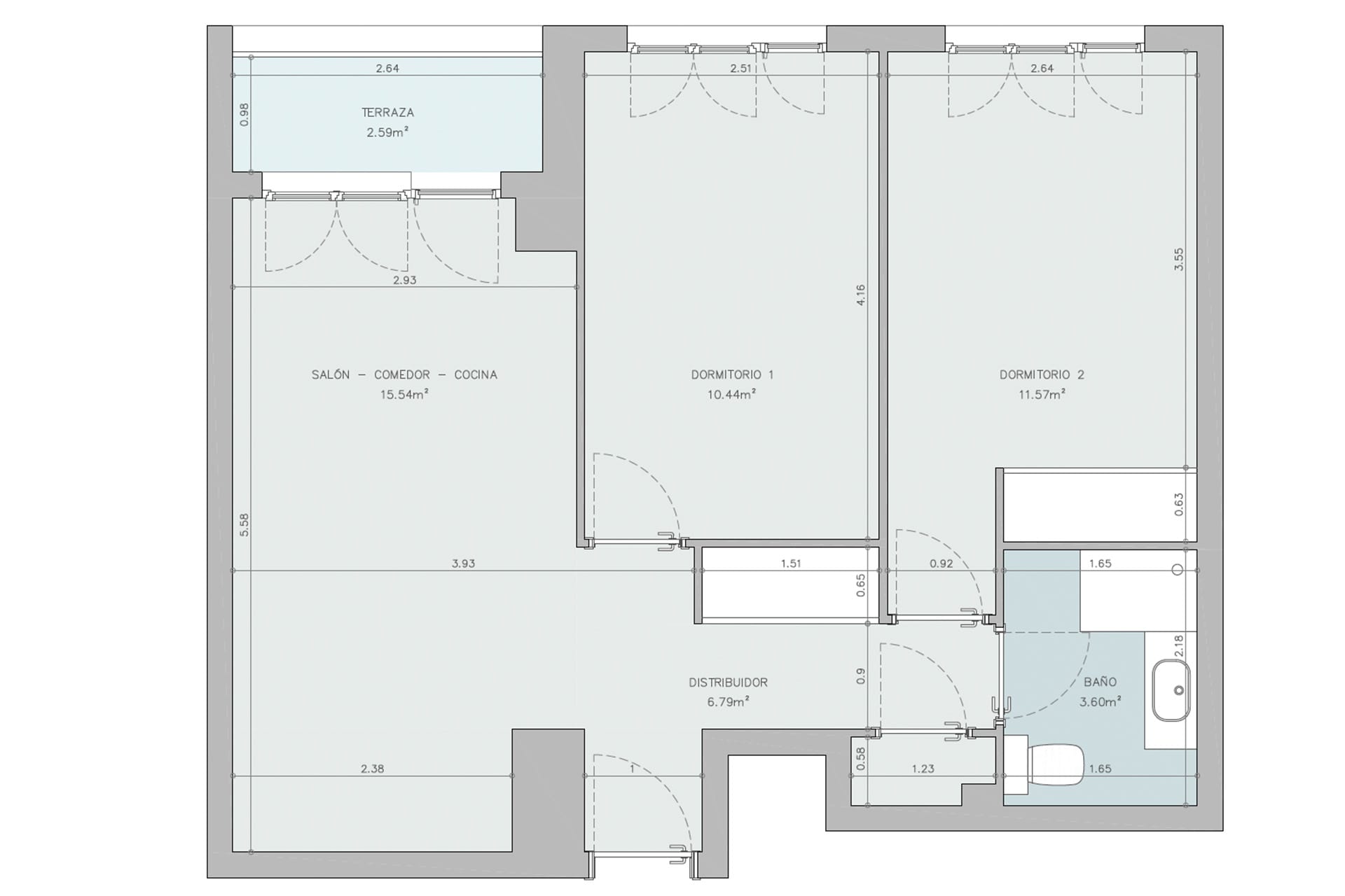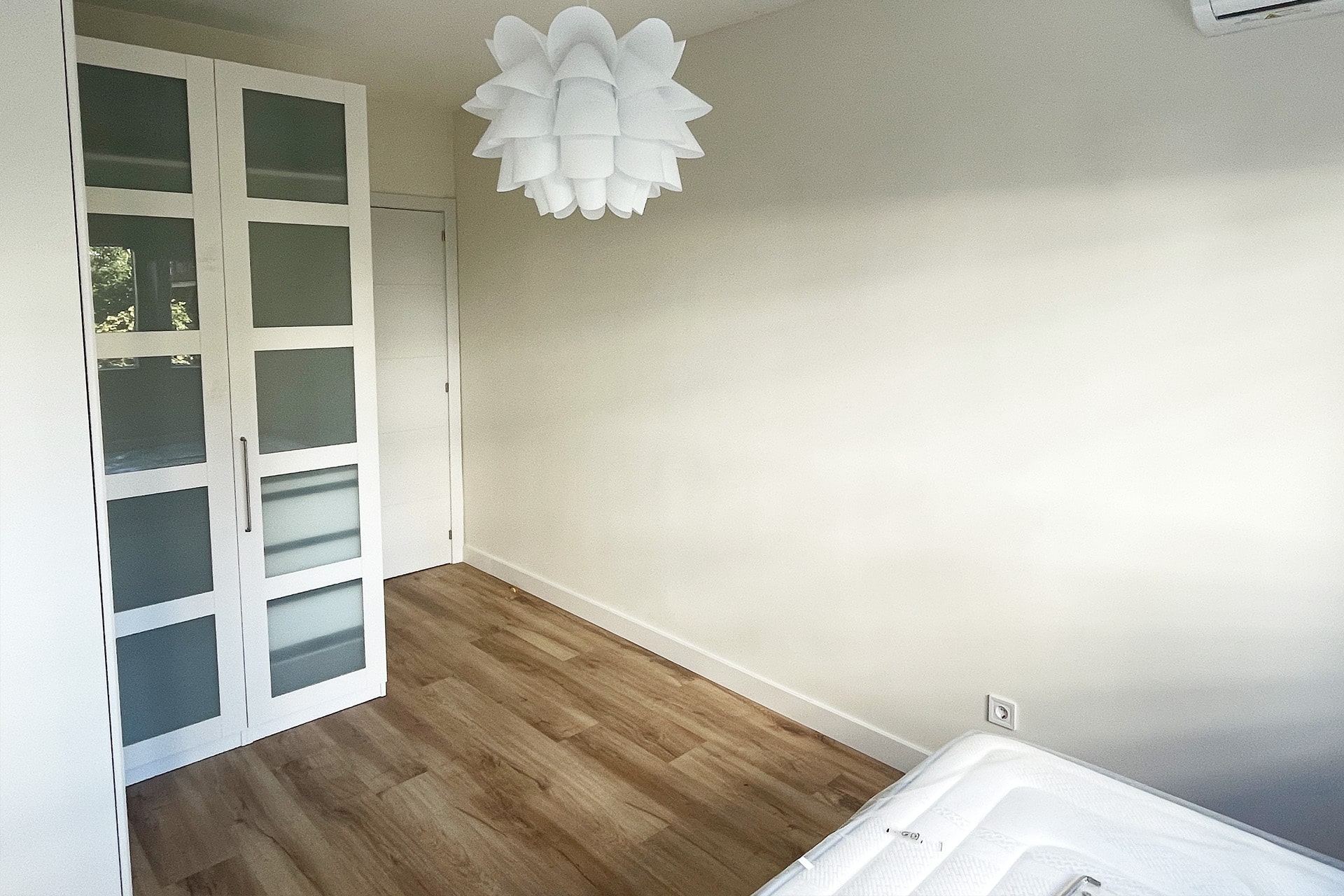 Reforma integral realizada en un piso en la zona se Prosperidad, en Madrid. Se llevó a cabo el cambio de distribución en salón, cocina, pasillo y habitaciones. Sustitución de toda la instalación de electricidad y fontanería. Finalizamos con trabajos de carpintería en armarios empotrados, instalación de aire acondicionado, terraza y sustitución de ventanas a PVC.