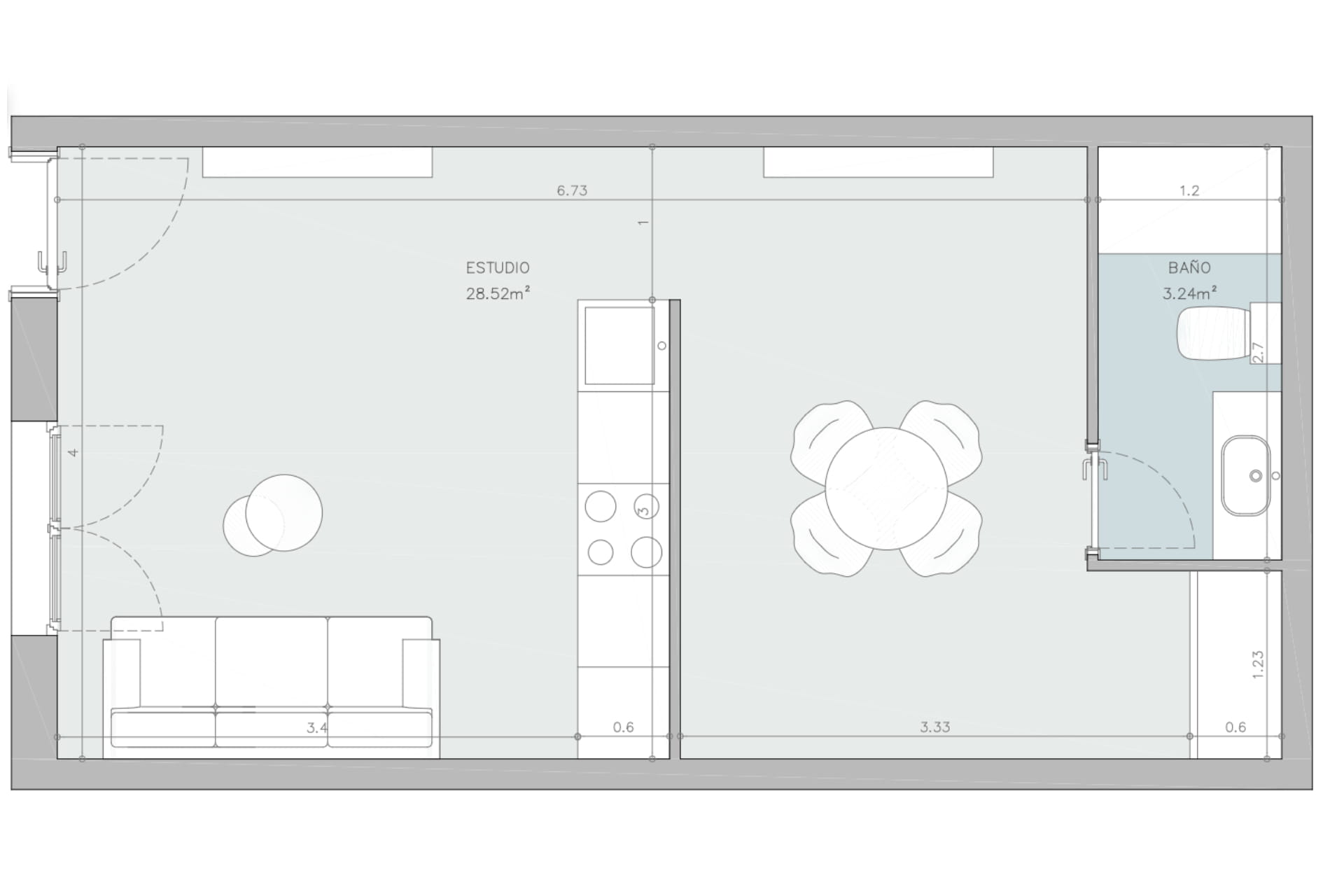Reforma integral realizada para un estudio de trabajo profesional en Móstoles, en el sur de Madrid. Se llevó a cabo el cambio de distribución en salón, cocina y baño. Sustitución de toda la instalación de electricidad, calefacción y fontanería. Aislamiento de todo el inmueble tanto en el interior como en el exterior (fachada). Finalizamos con trabajos de carpintería exterior, climatización y sustitución de ventanas a PVC.