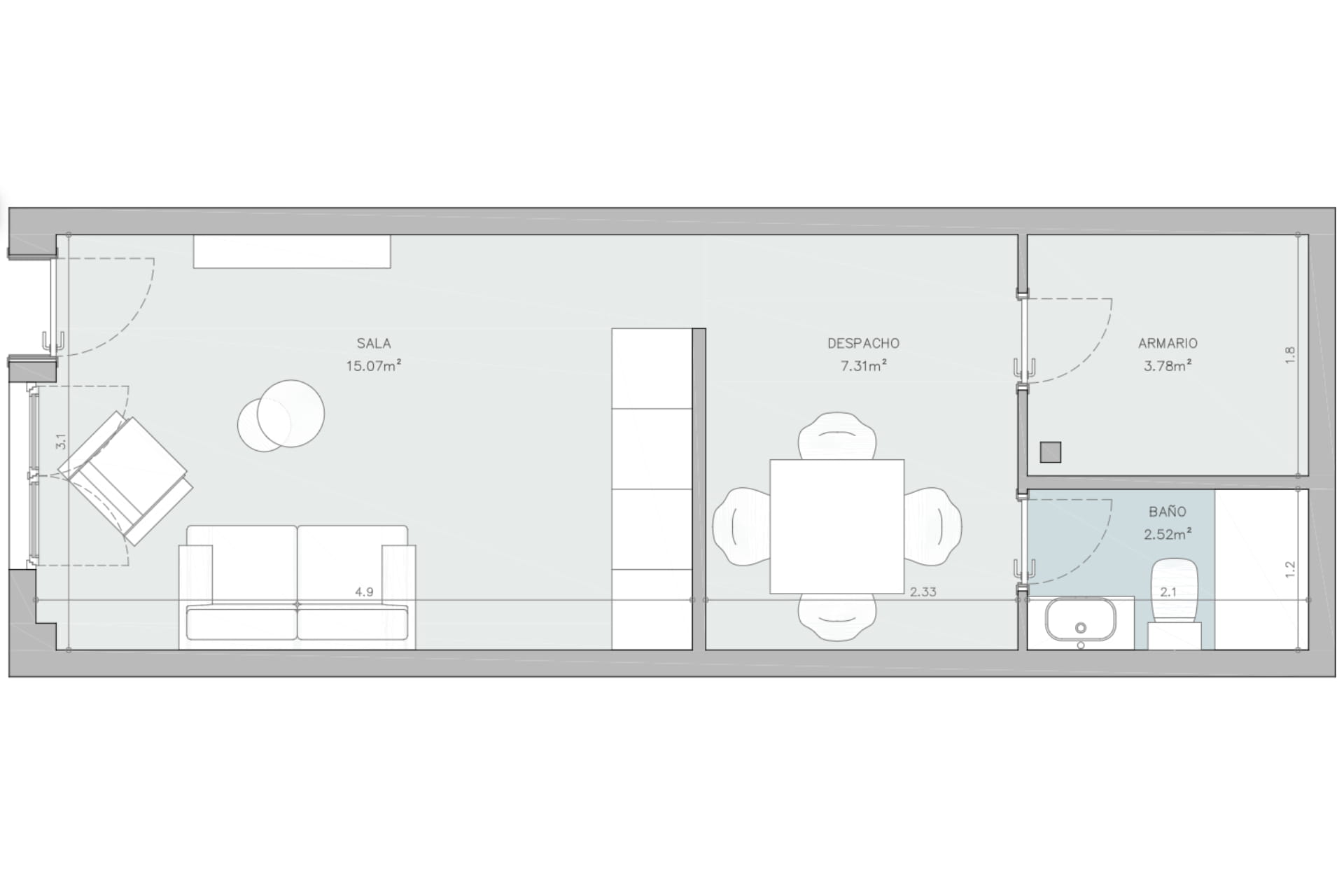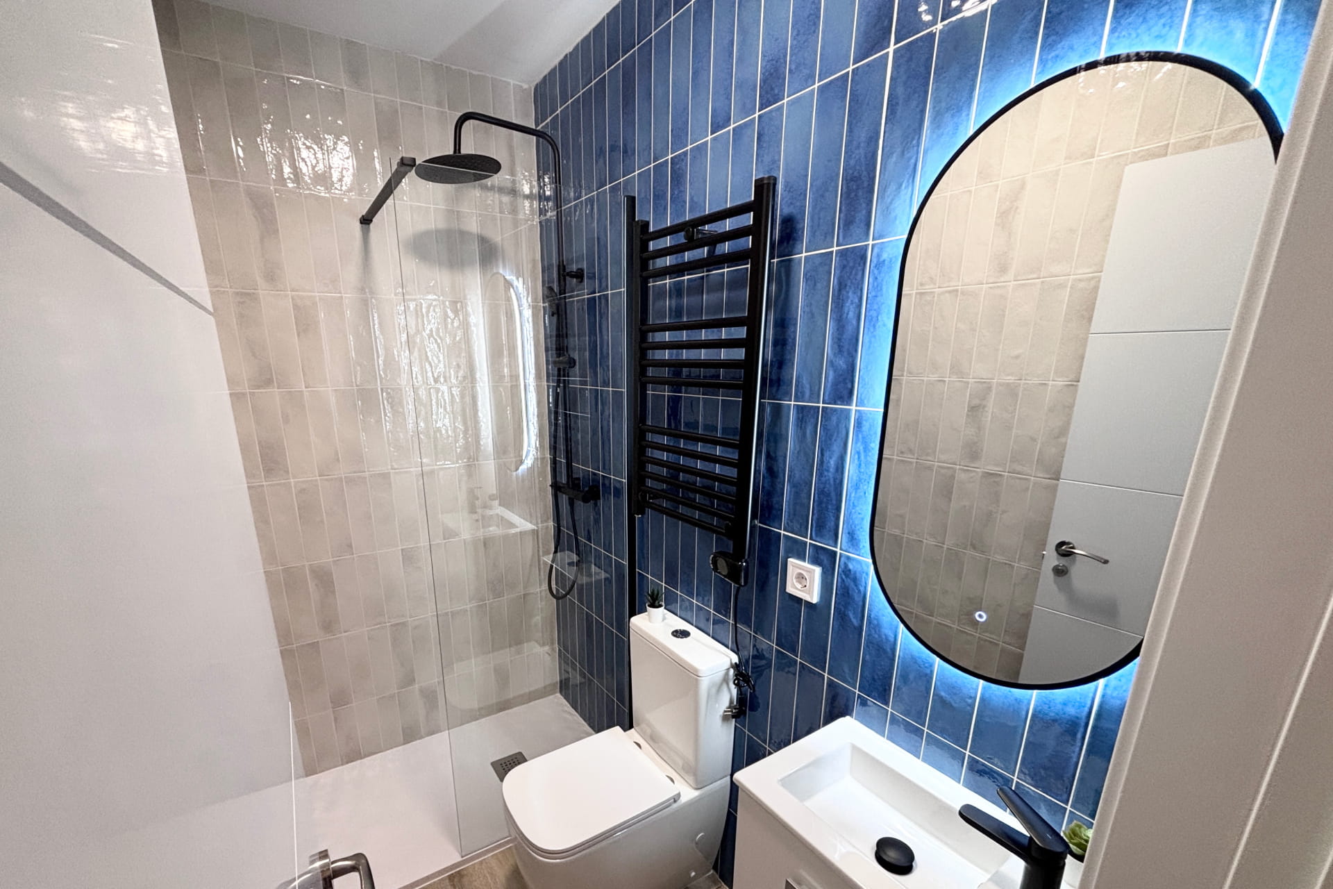 Reforma integral realizada para un estudio de trabajo profesional en Móstoles, en el sur de Madrid. Se llevó a cabo el cambio de distribución en salón, cocina y baño. Sustitución de toda la instalación de electricidad, calefacción y fontanería. Aislamiento de todo el inmueble tanto en el interior como en el exterior (fachada). Finalizamos con trabajos de carpintería exterior, climatización y sustitución de ventanas a PVC.